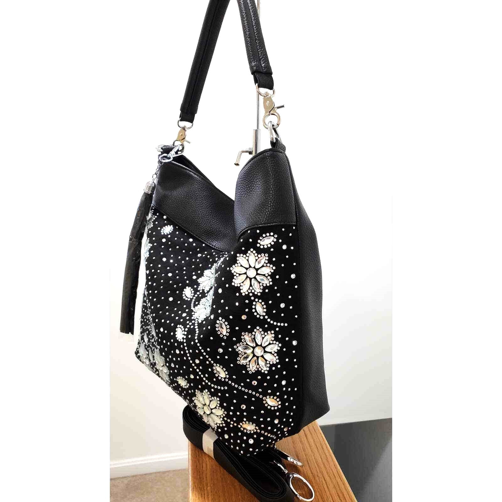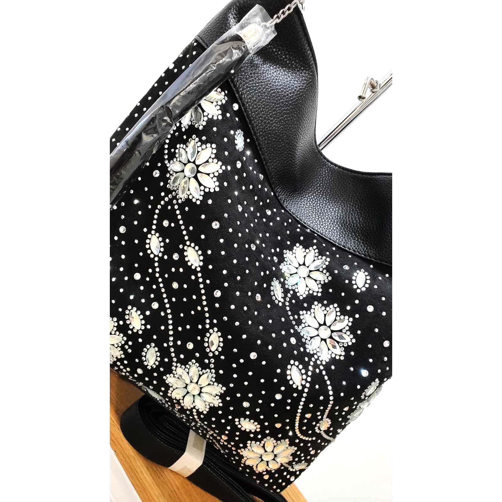 Black Rhinestone Floral Design Hobo