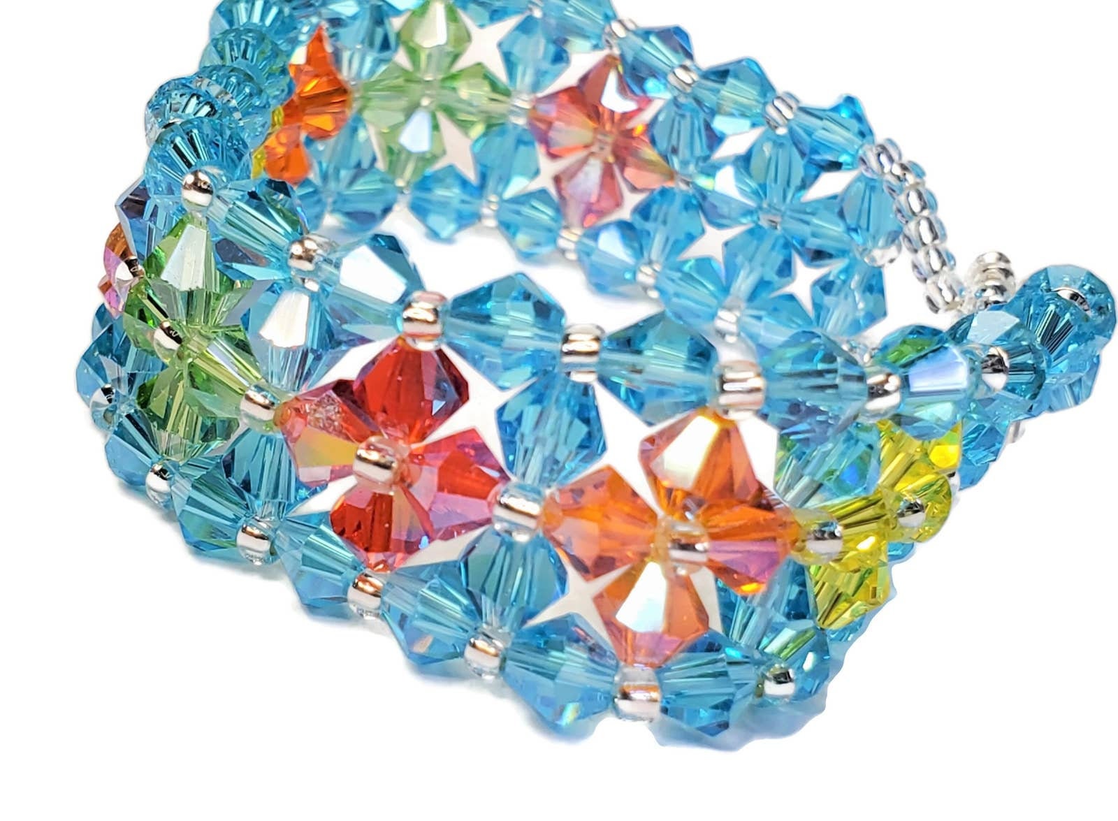 Crystal Bracelet Blue Crystal Bracelet Blazing Bicones Bracelet Preciosa Crystal Bicone Bracelet Blue Multi-Color