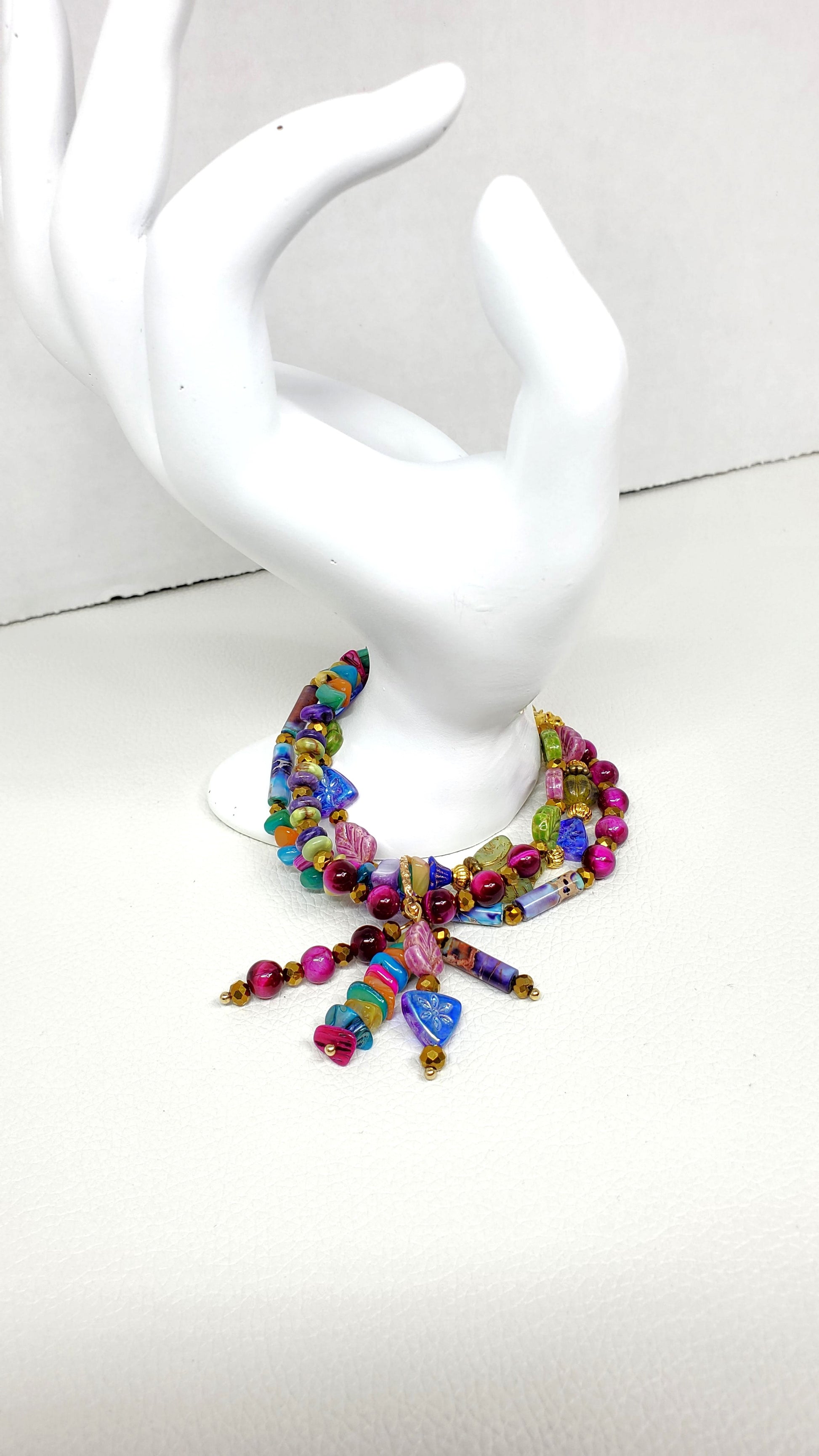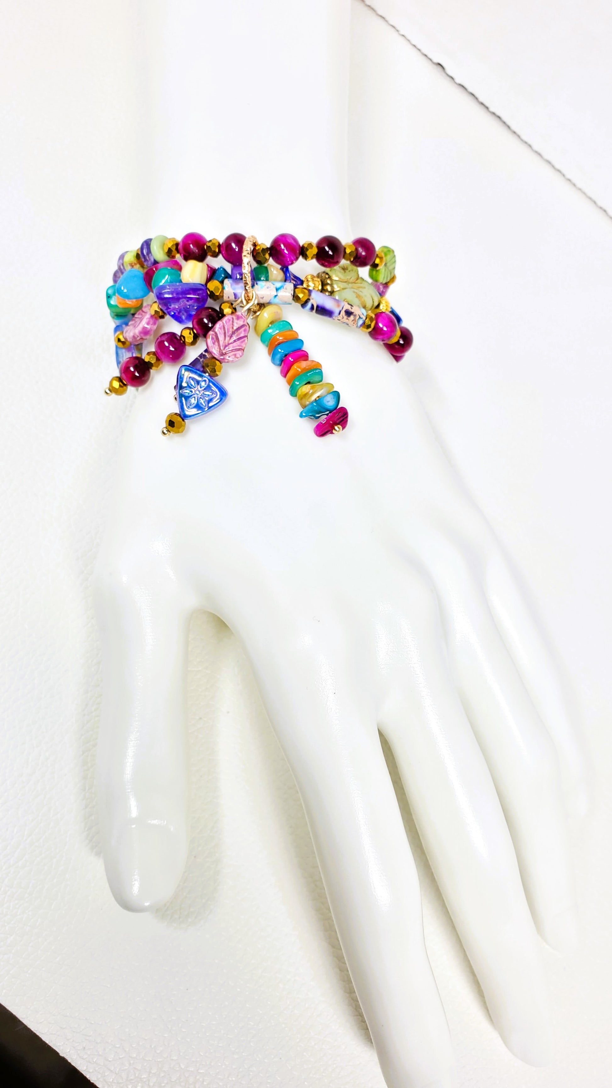 Elevate your accessory game with the Enchanted Jewel Tones Boho Charm Bracelet, a stunning beaded wire bracelet that captures the essence of bohemian elegance.